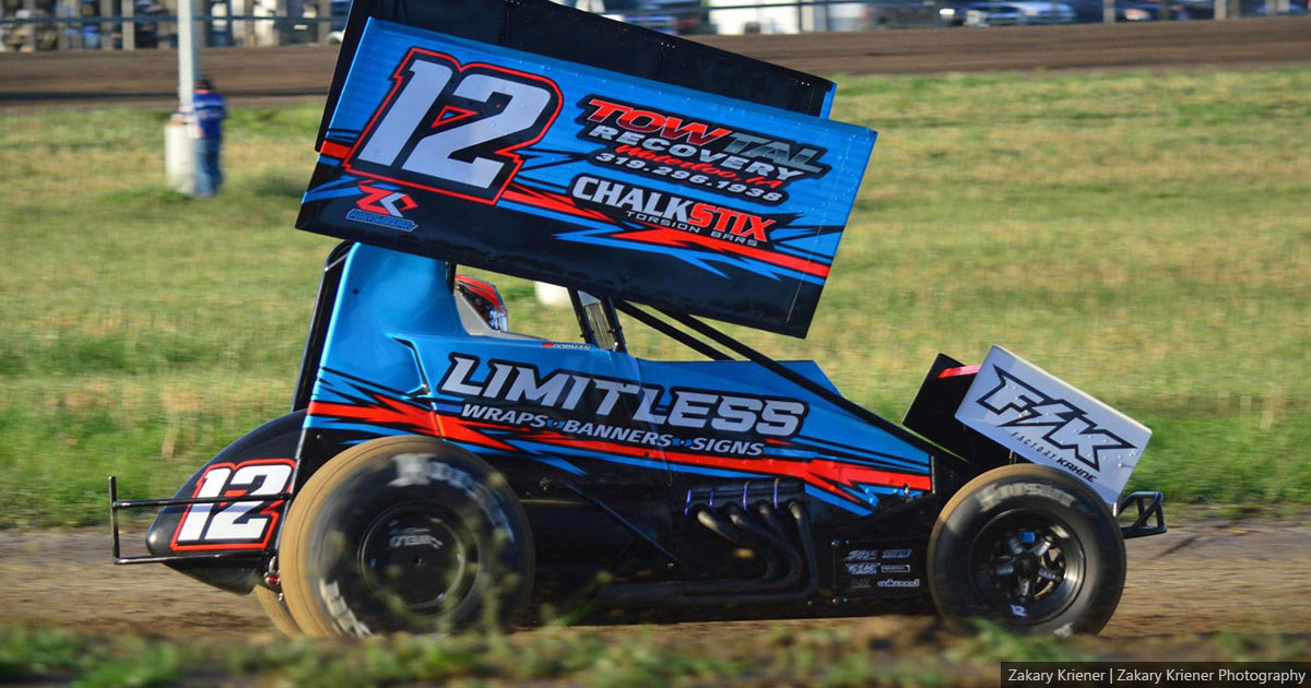 Saturday night at the Pritchard Family Auto Stores Mason City Motor Speedway, Luke Lane of Milo claimed the win in the Sprint Kings Sprint Car Series feature, part of the